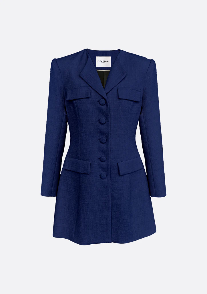 Crafted to highlight the feminine figure, the Hourglass Tweed Jacket is a masterpiece of structured design from ELCY ISLAND. Designed with a flattering hourglass fit, it accentuates the waist while gracefully highlighting the hips for an elegant and sophisticated silhouette. Whether styled as a chic dress or an elegant jacket, this versatile piece offers timeless charm. Pair it with tailored trousers or a matching skirt to complete the look—a true must-have addition to your wardrobe.