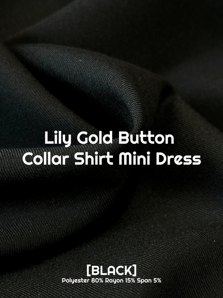 Lily Gold Button Collar Shirt Mini Dress (WOP013423_BK)