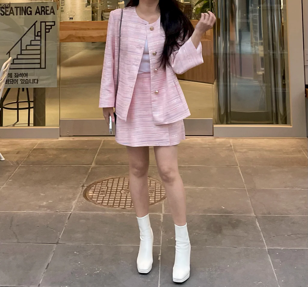 Introducing the Cherry Blossom Tweed Skort, a perfect blend of feminine elegance and practical comfort.Wear it alone for a chic, polished look, or pair it with the matching tweed jacket (Cheery Blossom Tweed Jacket) for a perfectly coordinated outfit!