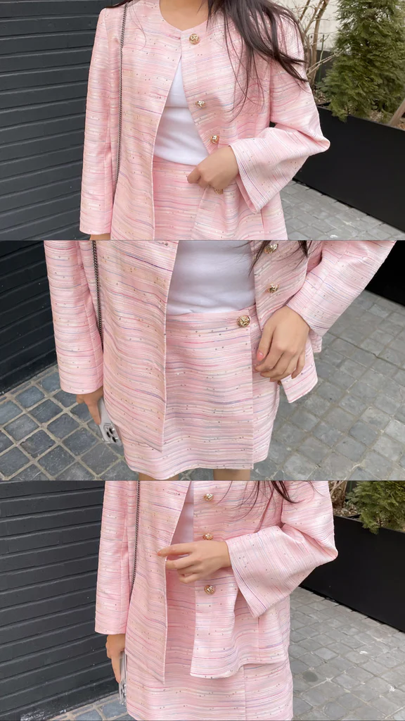 Crafted from premium textured tweed fabric, this skort offers a beautiful interplay of colors, making it a standout piece for the spring and summer seasons. The gold button accents add a subtle touch of sophistication, while the high-quality YKK zipper ensures smooth and effortless wear.
