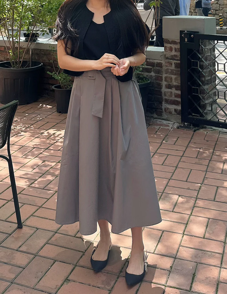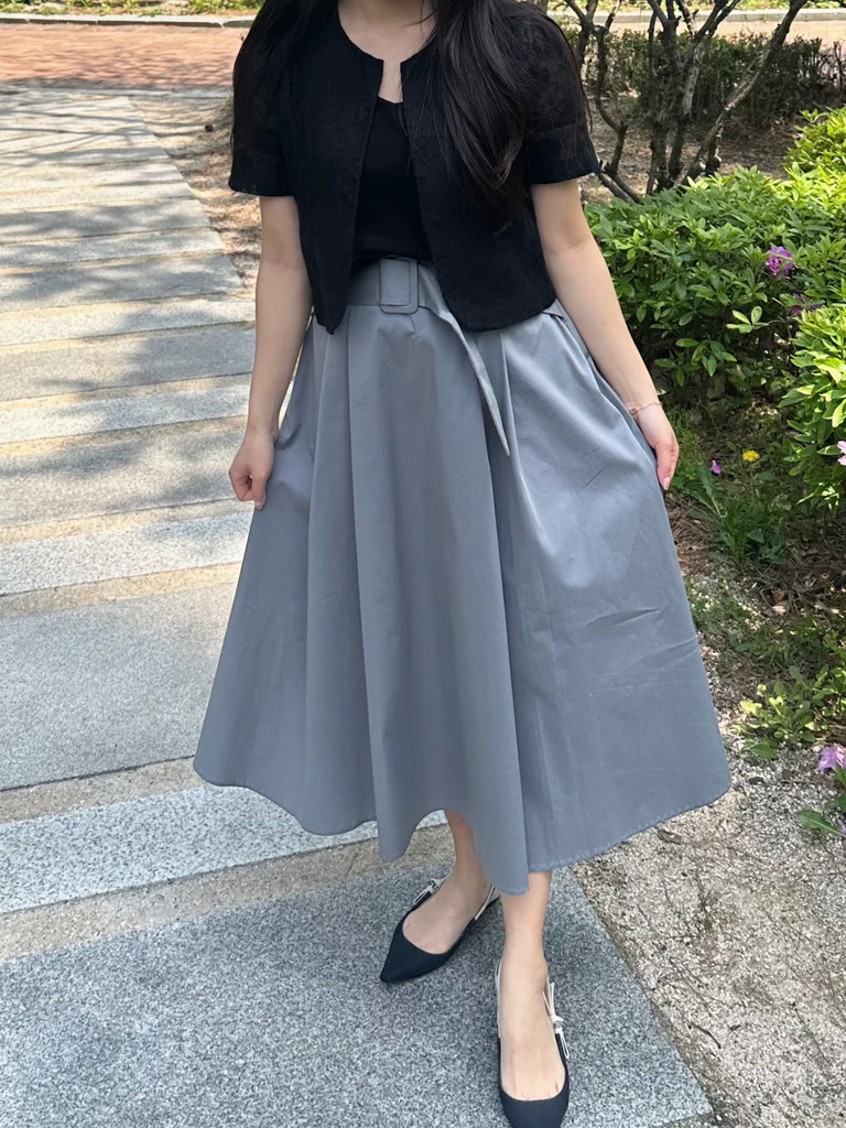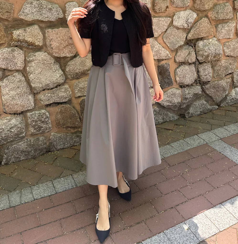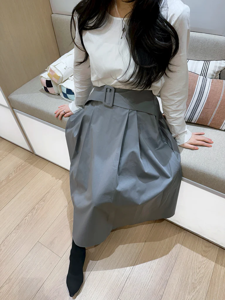 Back Belt Point A-line Skirt (WSEDTF34_GRY)