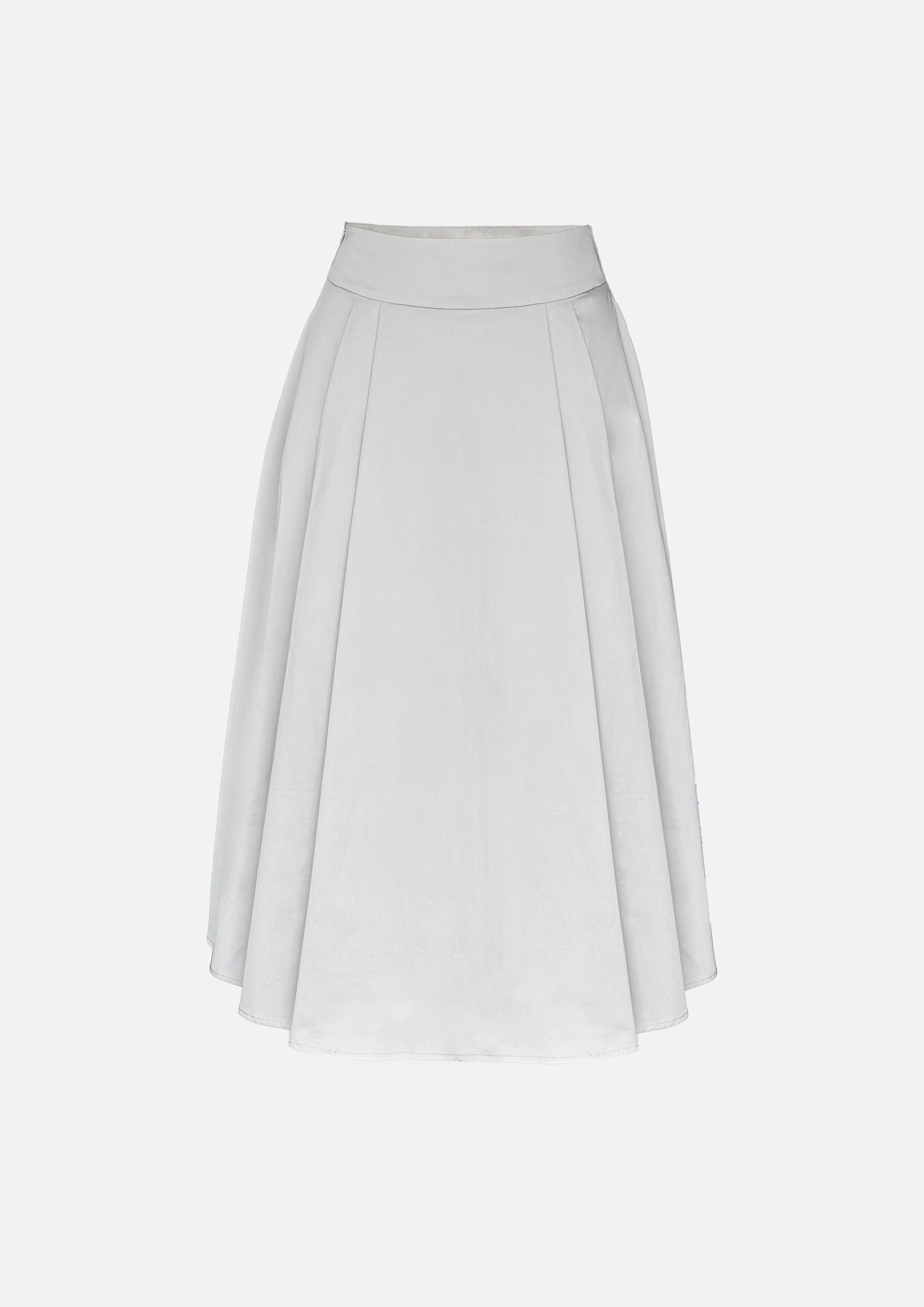 A timeless A-line skirt that blends classic elegance with unique details. Designed with a graceful, voluminous silhouette, this skirt enhances femininity effortlessly. The front features refined pintuck details, while the back showcases soft pleats and a belt accent, adding a stylish twist.