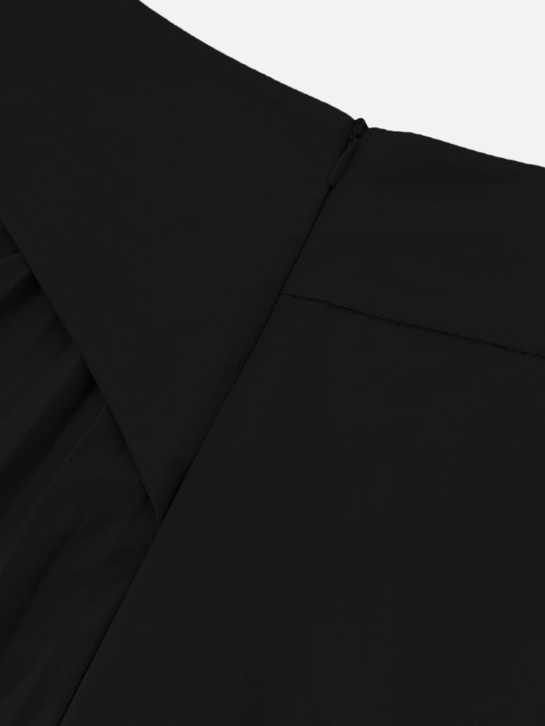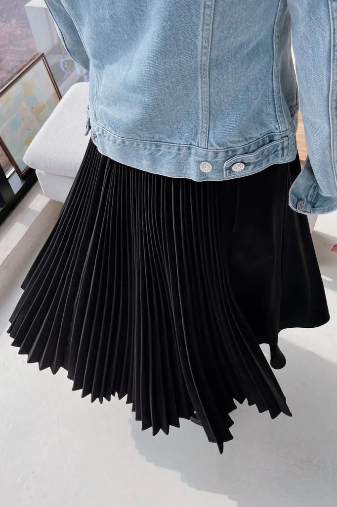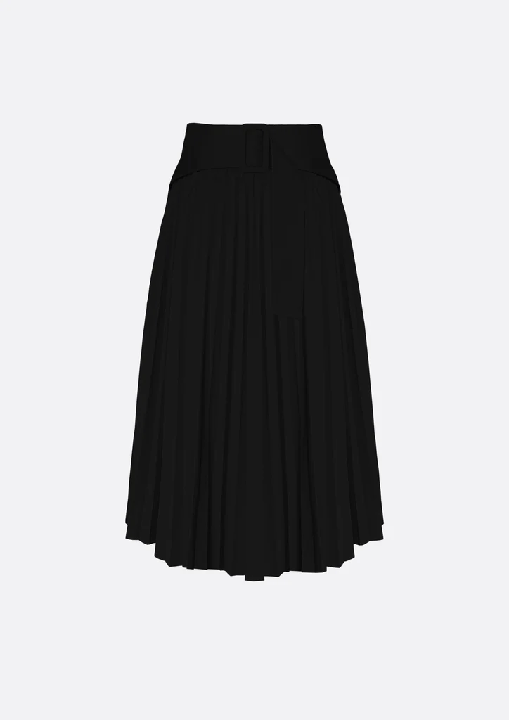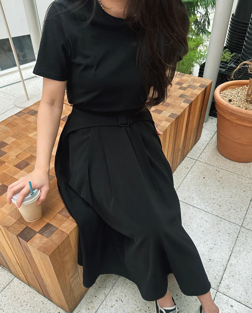 What makes it truly special is the contrast between the front and back—refined pintuck details in the front, and soft, cascading pleats at the back, accented with a fixed belt that adds definition to your waistline.