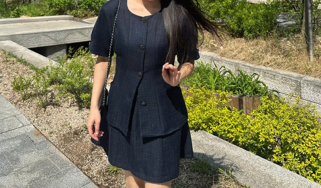 Every detail — from the pattern to the smallest finishing touch — has been thoughtfully crafted to enhance its structured silhouette and graceful fit. The waistline is gently shaped to create a slimmer, more flattering look, while the back line features soft curves for a refined yet sophisticated mood.