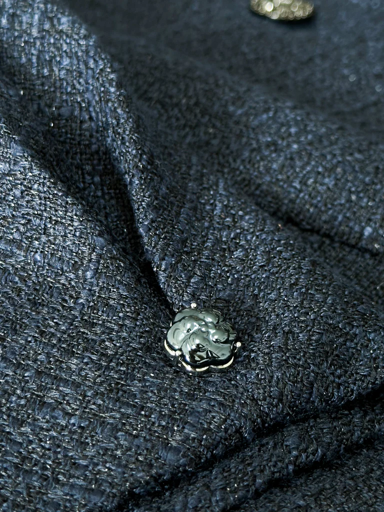 - Flower-Shaped Metal Buttons - Even the sleeves are adorned with flower-shaped metal buttons, offering a feminine and polished accent.