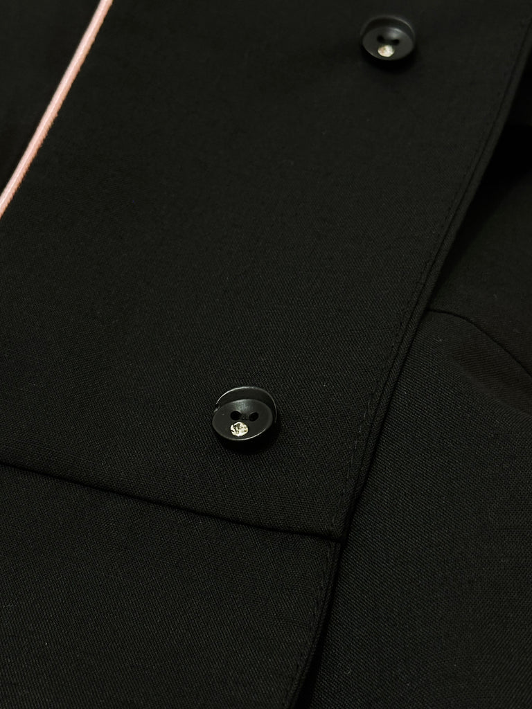 - Fabric-covered buttons: Matching covered buttons on the front placket enhance the cohesive and premium finish.