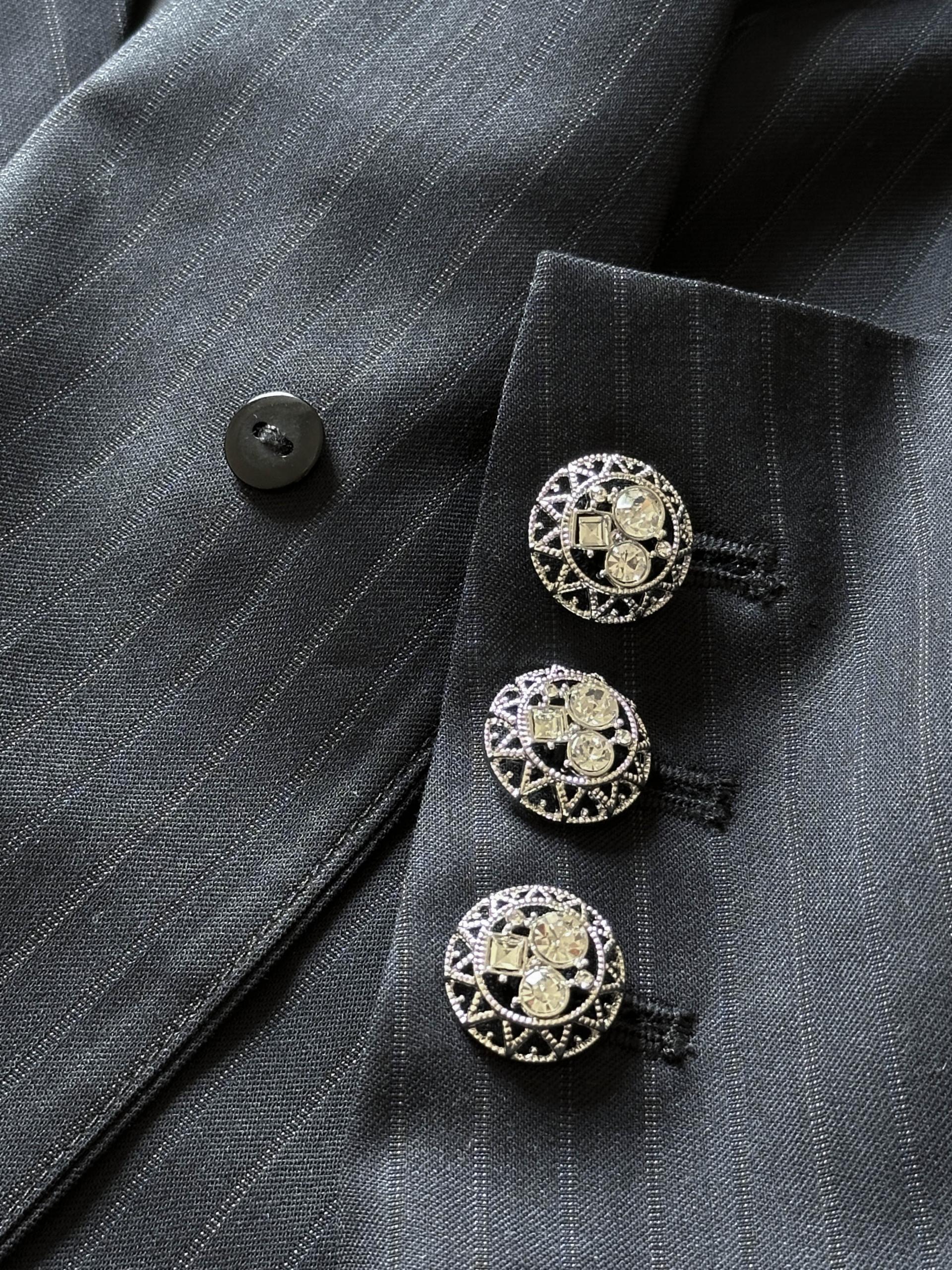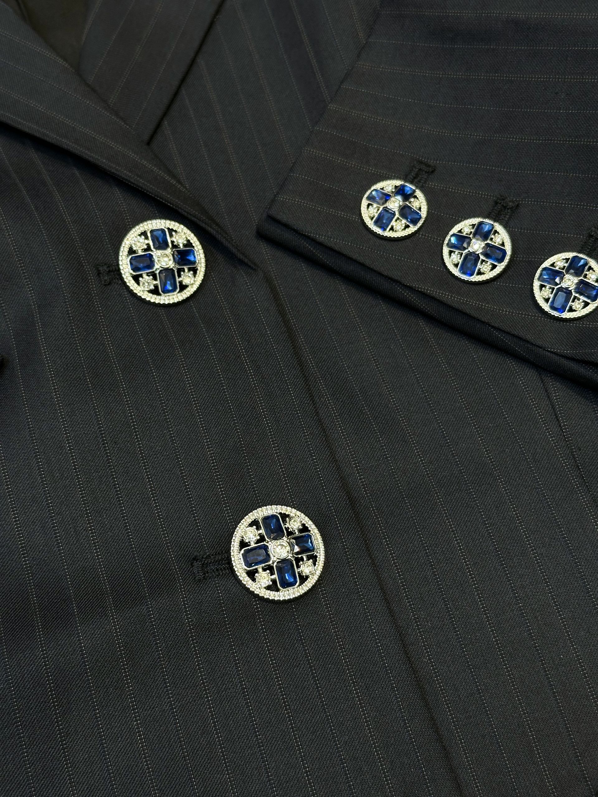 upgrade to handcrafted decorative buttons — a small detail that defines the whole look.