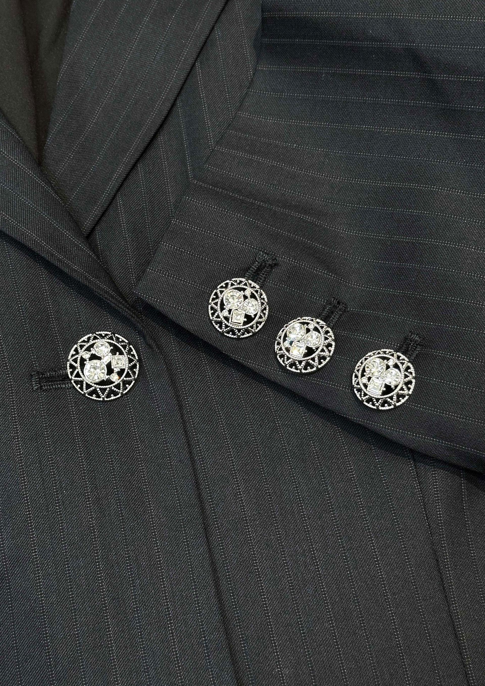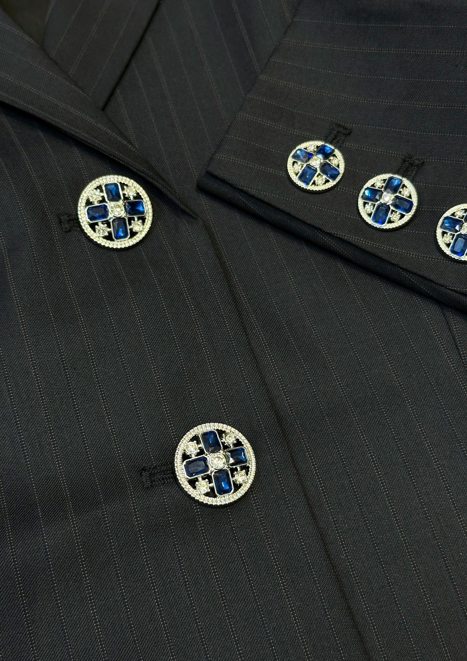 The Silvia Wool & Silk Jacket and Trousers are crafted from premium Japanese fabric for the Black Label line. Expert 1:1 tailoring and meticulous construction create a balance of classic refinement and contemporary polish. The weight and structure of wool combine with a subtle silk sheen for a luxurious hand feel and enduring presence. Choose from button options (A/B). Select the handmade decorative buttons for a personalized finish. Worn together, the set elevates any occasion from formal meetings to special events.